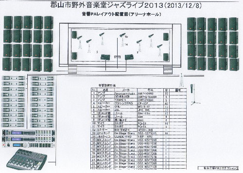 ステージ・ホールライブやJAZZ、フォークコンサートライブ、ロックライブ等と室内でのレンタル機器搬入 音響のミキシング操作、カラオケ大会等の音響システムのレンタル全般をお引き受けします。 |