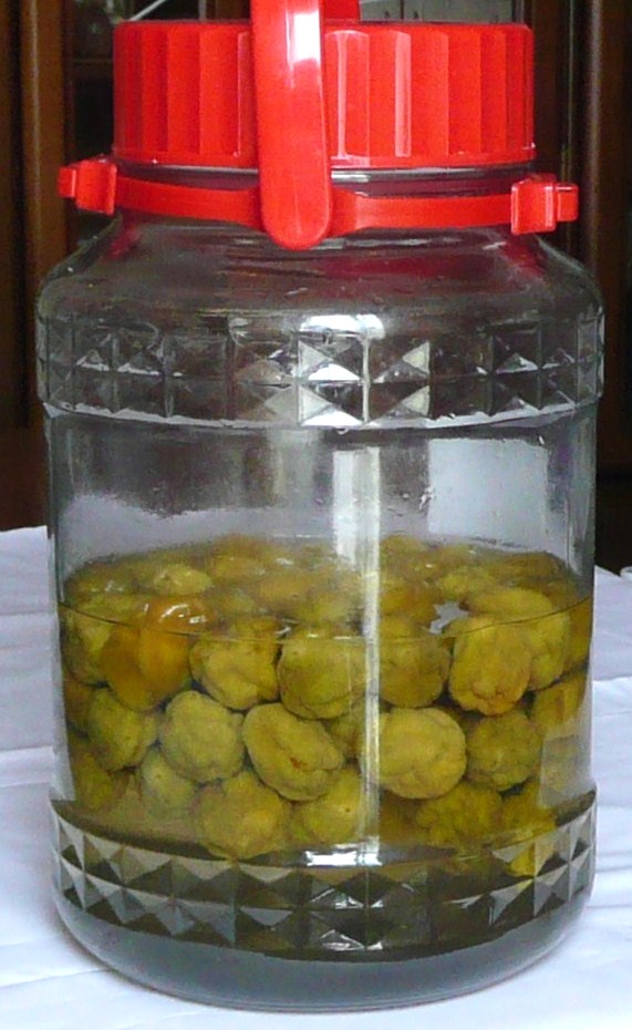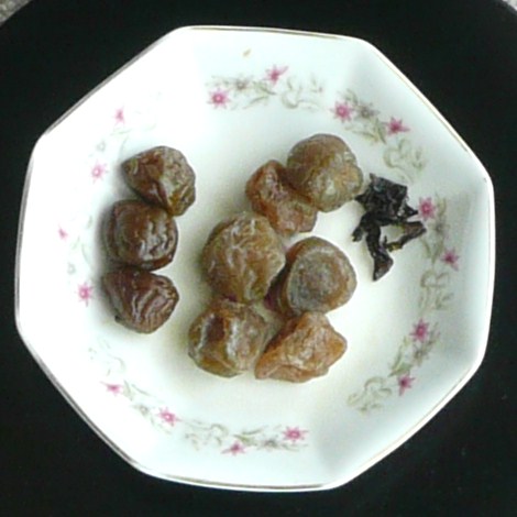 (酸味好みや薄い甘味好みの方は、適当な味のところで茶梅を取り出して下さい。氷砂糖の使用量を少なくする方法も考えられます。)
